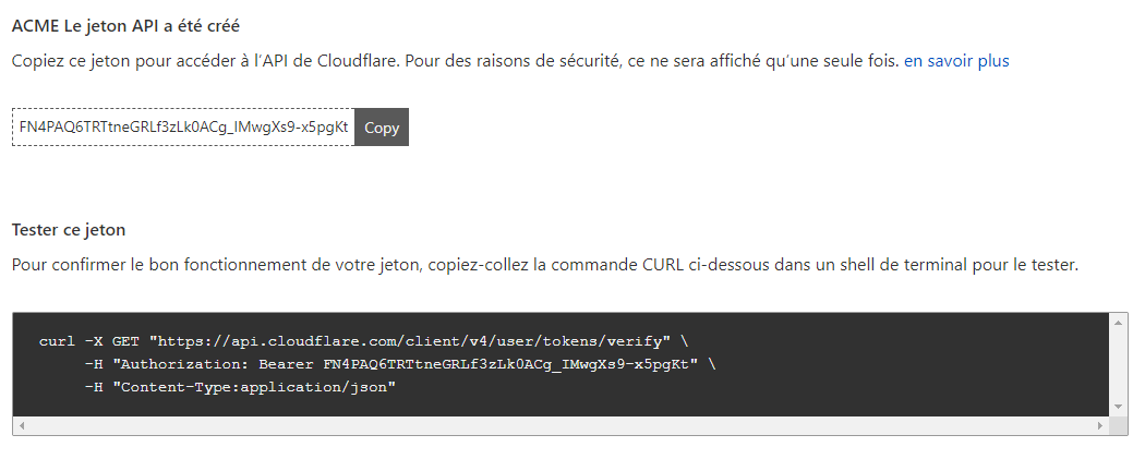 à la fin le jeton est crée, il faut précieusement copier le jeton, ensuite il ne sera plus affiché !